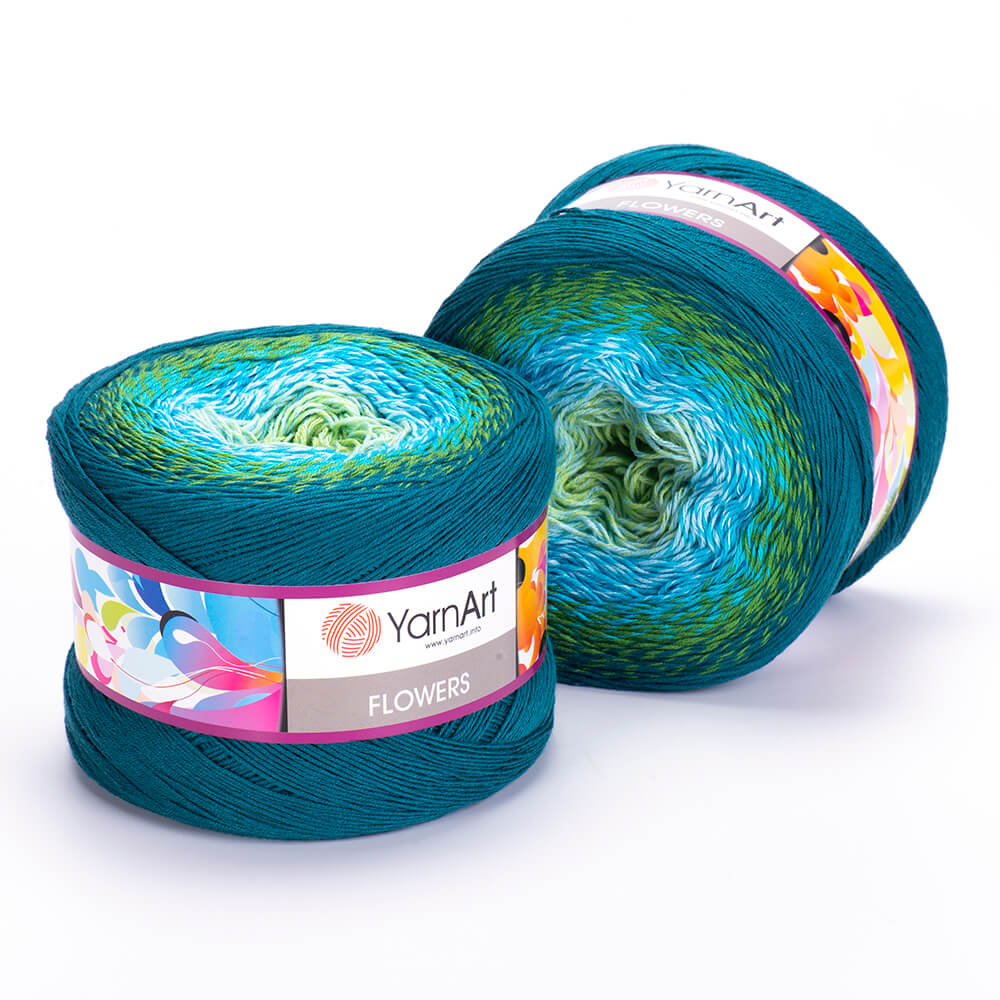 YarnArt Flowers, which combines harmonious colors in the same cake yarn is ideal for your summer knits due to its 55% cotton content. Flowers is perfect for shawls, dresses, blouses, cardigans, baby garments and home accessories. Each cake ball is 1000 meters long so a single ball is enough for a medium sized knit.